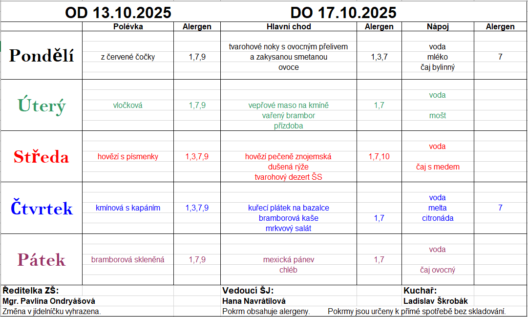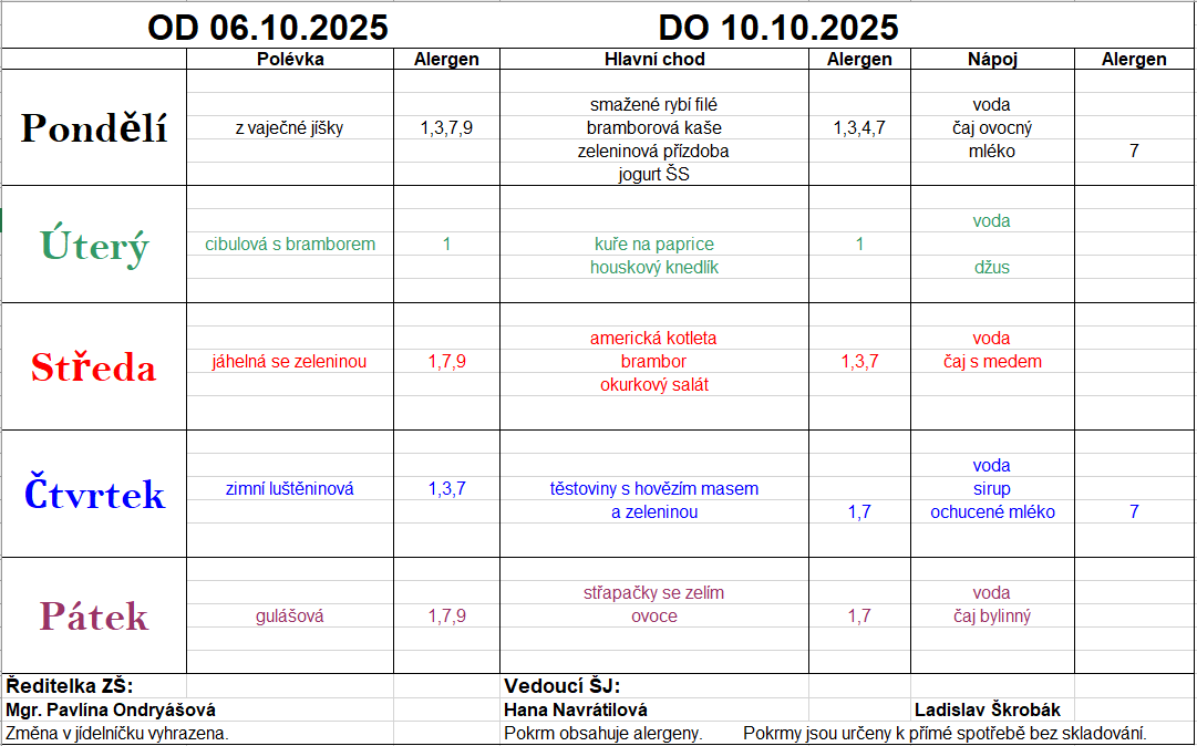 Změna v jídelníčku vyhrazena. Pokrm obsahuje alergeny.